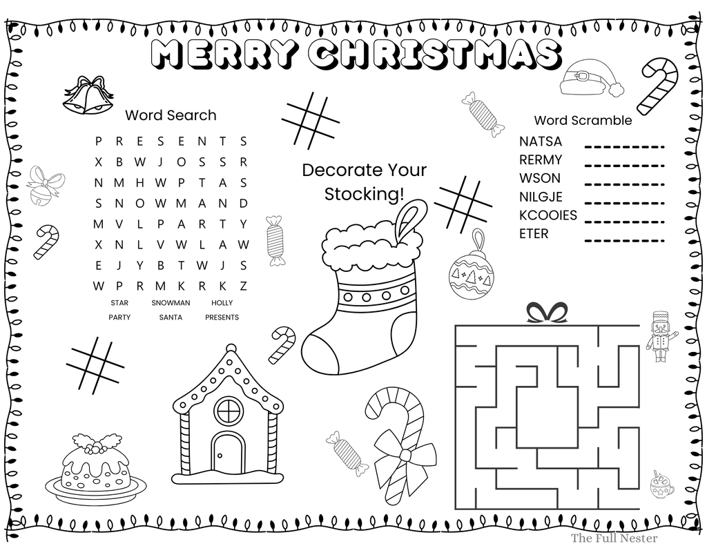 Keep the children busy while you put the finishing touches on the Christmas feast with these holiday-themed activity placemats!