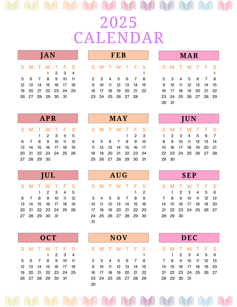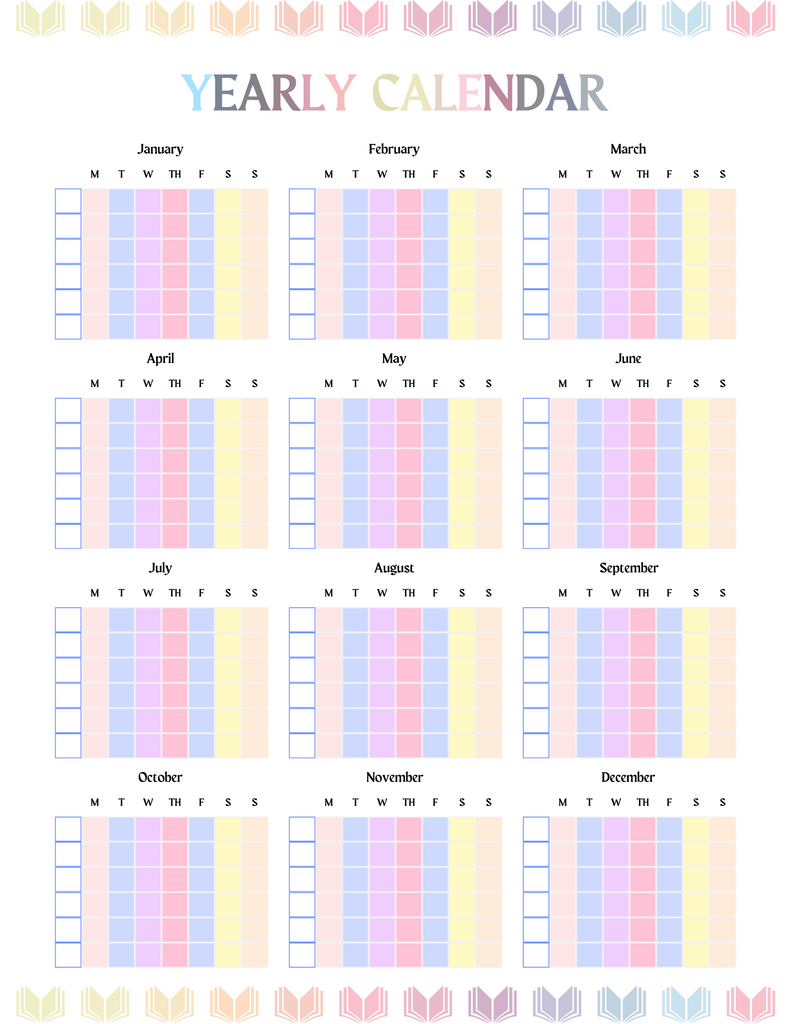 • Monthly calendar pages